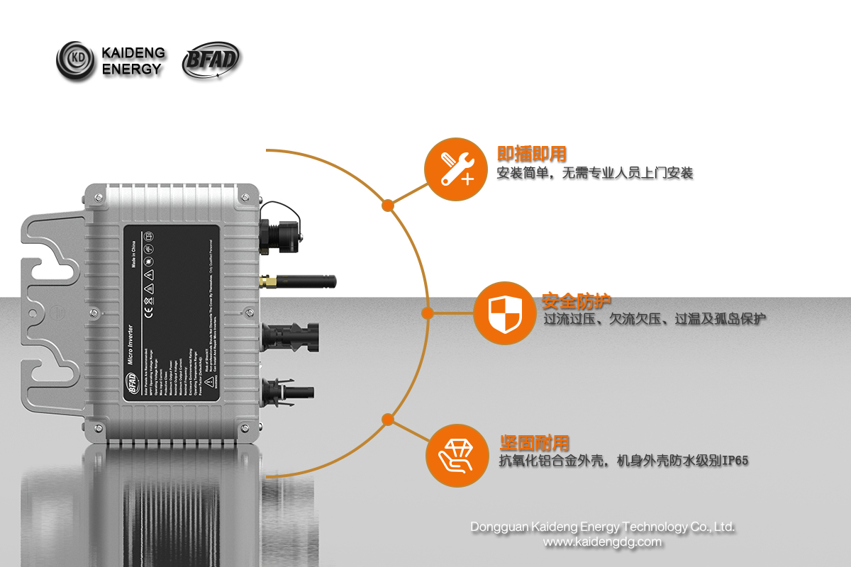 凱登能源第五代SMI系列通訊型產(chǎn)品采用防水流型線設(shè)計(jì),可以更好的為設(shè)備提供散熱功能。內(nèi)置的最大功率點(diǎn)追蹤引擎(MPPT),可以更好地捕捉光照的變化,即使在陰雨天氣也能工作,通過它能最大程度的捕獲和收集陽光。逆變器兼容開路電壓為22~60V的多種常規(guī)太陽能面板,通過技術(shù)手段令面板發(fā)揮出它的最佳性能。 凱登微型逆變器的電力輸出模式為逆向傳輸技術(shù),優(yōu)先將電能供應(yīng)給負(fù)載,然后才將多余的電能上傳至當(dāng)?shù)仉娋W(wǎng),它的轉(zhuǎn)換效率高達(dá)93%,產(chǎn)品擁有多項(xiàng)國家發(fā)明及外觀專利,并且擁有CE,CEC,ETL,INMETOR等多個(gè)地區(qū)和國家的產(chǎn)品認(rèn)證。