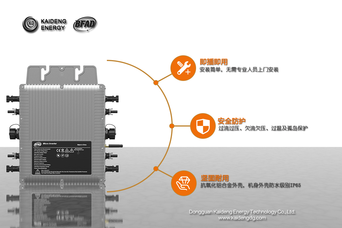 凱登能源第五代SMI系列通訊型產(chǎn)品采用防水流型線設(shè)計,可以更好的為設(shè)備提供散熱功能。內(nèi)置的最大功率點追蹤引擎(MPPT),可以更好地捕捉光照的變化,即使在陰雨天氣也能工作,通過它能最大程度的捕獲和收集陽光。逆變器兼容開路電壓為22~60V的多種常規(guī)太陽能面板,通過技術(shù)手段令面板發(fā)揮出它的最佳性能。 凱登微型逆變器的電力輸出模式為逆向傳輸技術(shù),優(yōu)先將電能供應(yīng)給負(fù)載,然后才將多余的電能上傳至當(dāng)?shù)仉娋W(wǎng),它的轉(zhuǎn)換效率高達(dá)93%,產(chǎn)品擁有多項國家發(fā)明及外觀專利,并且擁有CE,CEC,ETL,INMETOR等多個地區(qū)和國家的產(chǎn)品認(rèn)證。